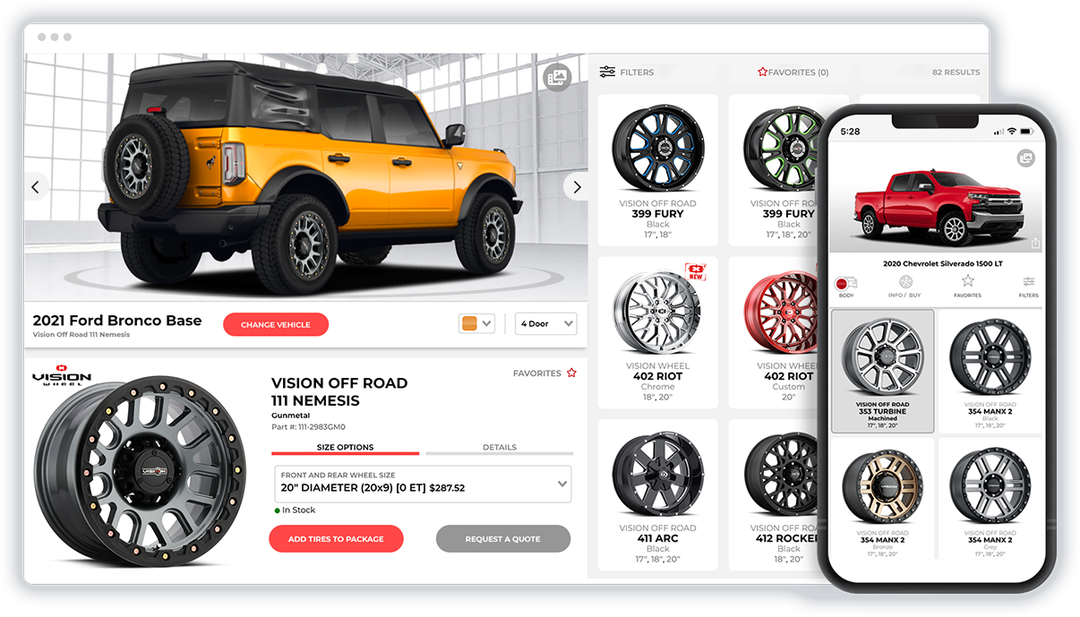 The iConfigurator Elite is a business to business tool that gives manufacturers & retailers the ability to show their customers which wheels and accessories are available for their vehicle and what the upgrades will realistically look like.